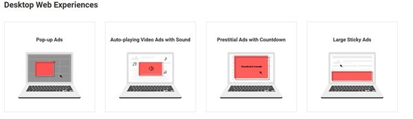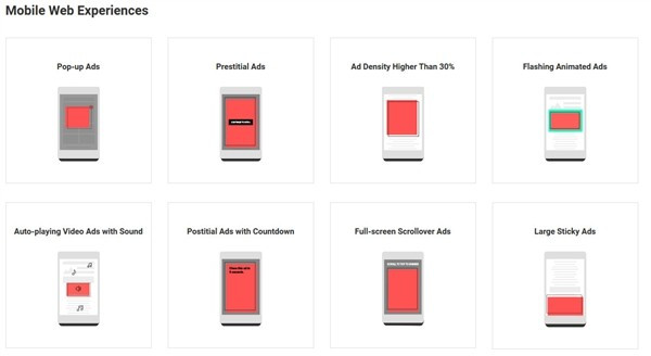 Google 在部落格公佈了優質廣告聯盟(Coalition for Better Ads)基於超過 6萬6千名消費者的回饋後,所整理出來在個人電腦平台、智慧型手機平台中,會讓人們覺得被干擾、惱人的 12 種數位廣告形式。